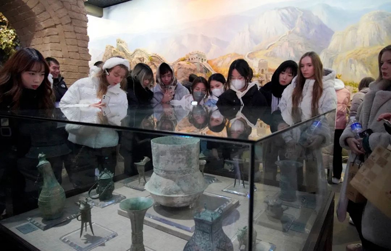 北京語言大學(xué)國際中文學(xué)院領(lǐng)導(dǎo)和老師,以及來自俄羅斯、塞爾維亞、韓國、泰國等國家和地區(qū)的170多名海外留學(xué)生,先后參觀了酒博物館、地下酒窖和黨建天地,在感受板城燒鍋酒傳承三百余年的老五甑釀造工藝的同時,共同聆聽、探尋板城酒業(yè)背后的深厚歷史與文化底蘊。在深入了解企業(yè)脈絡(luò)、品牌文化后,對冀酒文化的認識更加深刻。
