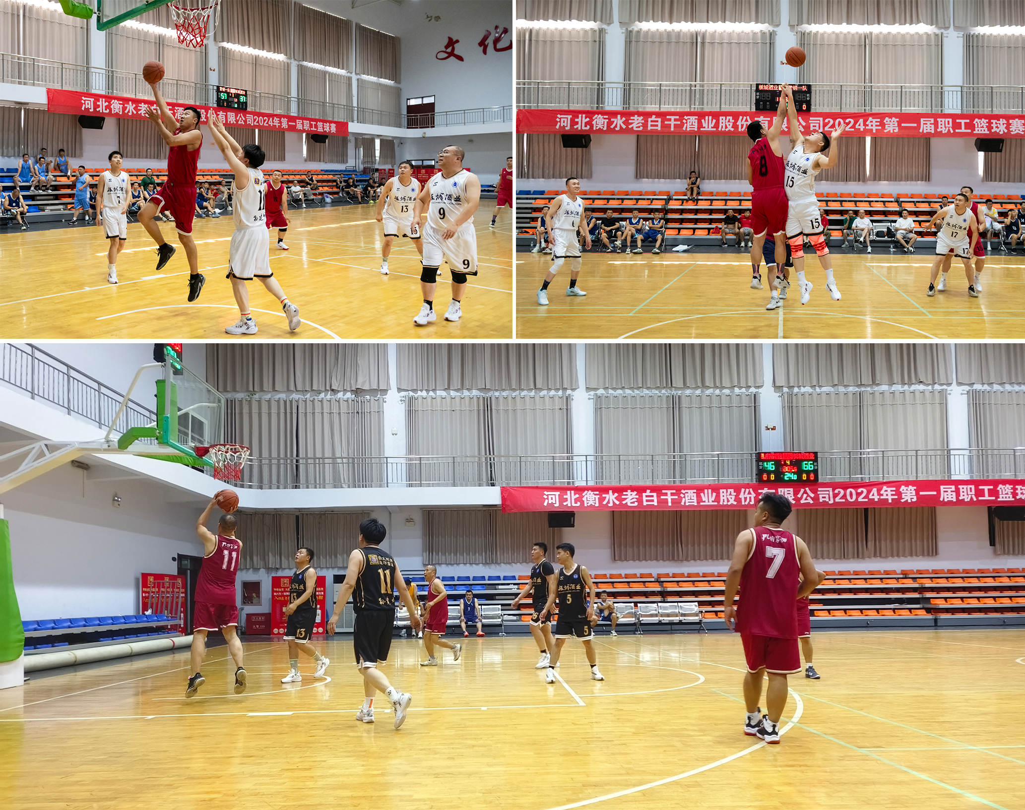 比賽現(xiàn)場(chǎng),人聲鼎沸、精彩紛呈,各酒業(yè)參賽隊(duì)員神情專(zhuān)注、默契配合、你追我趕、奮力拼搶?zhuān)l(fā)球、運(yùn)球、傳球、斷球……每一次籃球劃過(guò)指尖飛向籃筐的時(shí)候,都牽動(dòng)著賽場(chǎng)內(nèi)外每個(gè)人的心跳。遠(yuǎn)投三分、長(zhǎng)傳上籃、板下奪球,每一個(gè)動(dòng)作,每一次進(jìn)攻,都展現(xiàn)出運(yùn)動(dòng)員們的堅(jiān)定、執(zhí)著和耐力,激情和希望在球場(chǎng)中凝聚,點(diǎn)燃了激情洋溢的青春賽場(chǎng)!