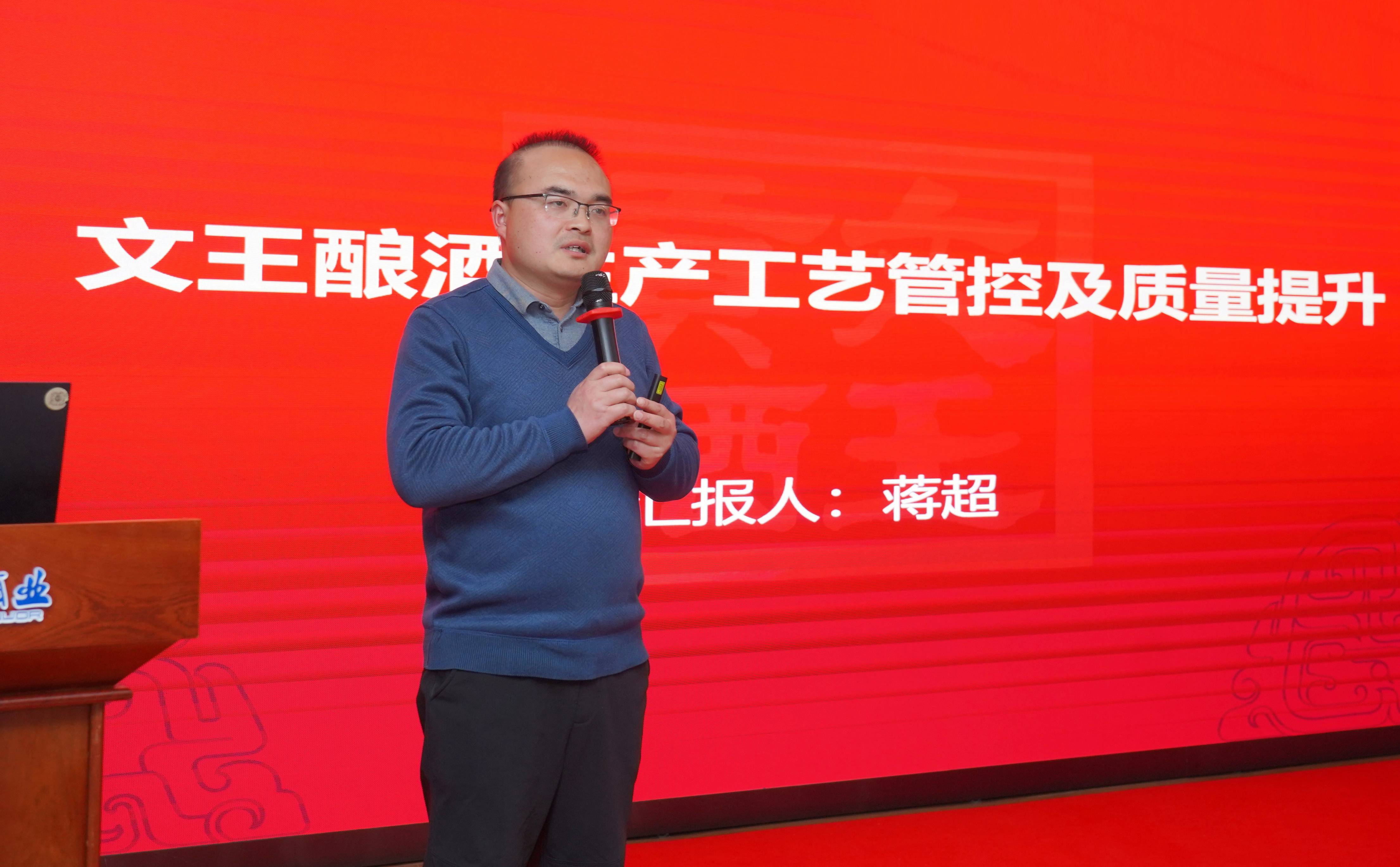 文王生產(chǎn)釀酒部總監(jiān)蔣超對“生產(chǎn)工藝管控及質(zhì)量提升”展開專題講座。蔣超總監(jiān)從技術(shù)創(chuàng)新、設(shè)備升級、人才培養(yǎng)等方面,闡述了文王酒業(yè)在提升產(chǎn)品品質(zhì)和精細化管理方面的探索與實踐。