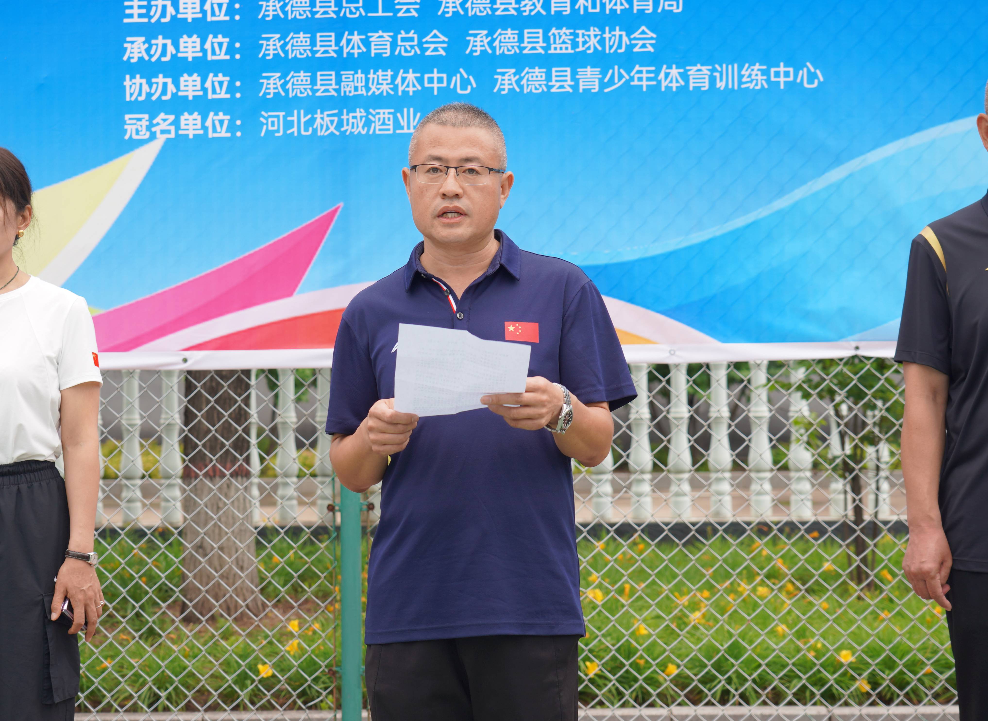 承德縣教育和體育局班子成員、體育工作指導(dǎo)中心主任朱瑞東,承德縣總工會(huì)黨組成員經(jīng)審委主任高文峰,板城酒業(yè)承德南部戰(zhàn)區(qū)和順部區(qū)域經(jīng)理胡聚偉,承德縣籃協(xié)協(xié)會(huì)會(huì)長申國民,承德縣體育總會(huì)總召集人王子忠,承德縣青少年體育訓(xùn)練中心主任段連雪,承德縣安匠鎮(zhèn)人大副主席高靜,比賽裁判長宋文劍出席本次開幕式。